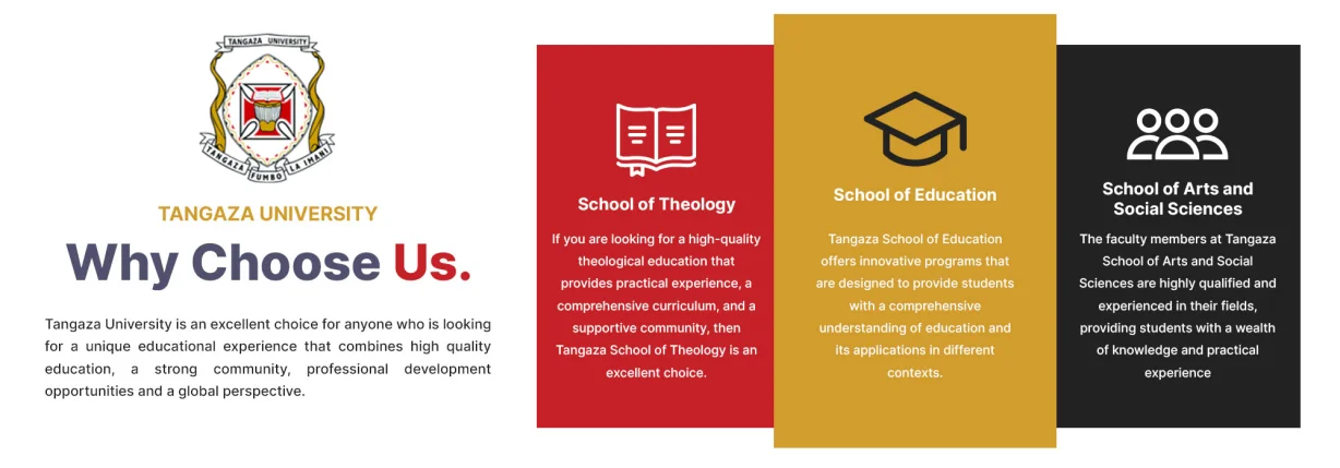 Tangaza University’s School of Education, School of Theology, School of Arts and Social Sciences collectively offer a diverse range of innovative programs designed to equip students with a comprehensive understanding of education, theology, arts, and social sciences in various contexts.